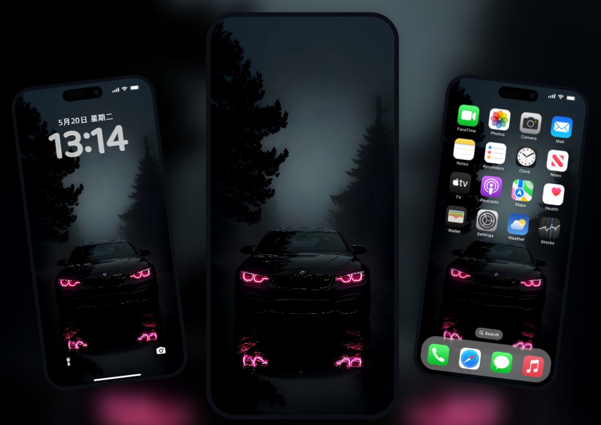 这幅宝马 M4 壁纸巧妙地利用了光线和黑暗的对比,将一辆高性能轿跑的内敛与狂野完美融合。在伸手不见五指的幽深迷雾中,M4 经典的“天使眼”不再是传统的白光,而是被赋予了大胆的粉色/紫色调,这种非传统的色彩赋予了壁纸独特的赛博朋克或极致个性的审美。车辆本身被黑暗深度隐藏,只露出了凶悍的前脸和标志性的双肾格栅,配合两侧影影绰绰的松树剪影,营造出一种**“暗夜独行者”的神秘气质。路面上光与影的倒影处理得极为细腻,进一步增强了画面的立体感和超现实感**,让用户每次解锁手机,都能感受到性能机器的低吼和冷酷。如果您对**适配 小米 17 Pro Max 及其他小米机型的精选壁纸合集**感兴趣,我们为您准备了各种风格的高清作品,欢迎点击探索。
