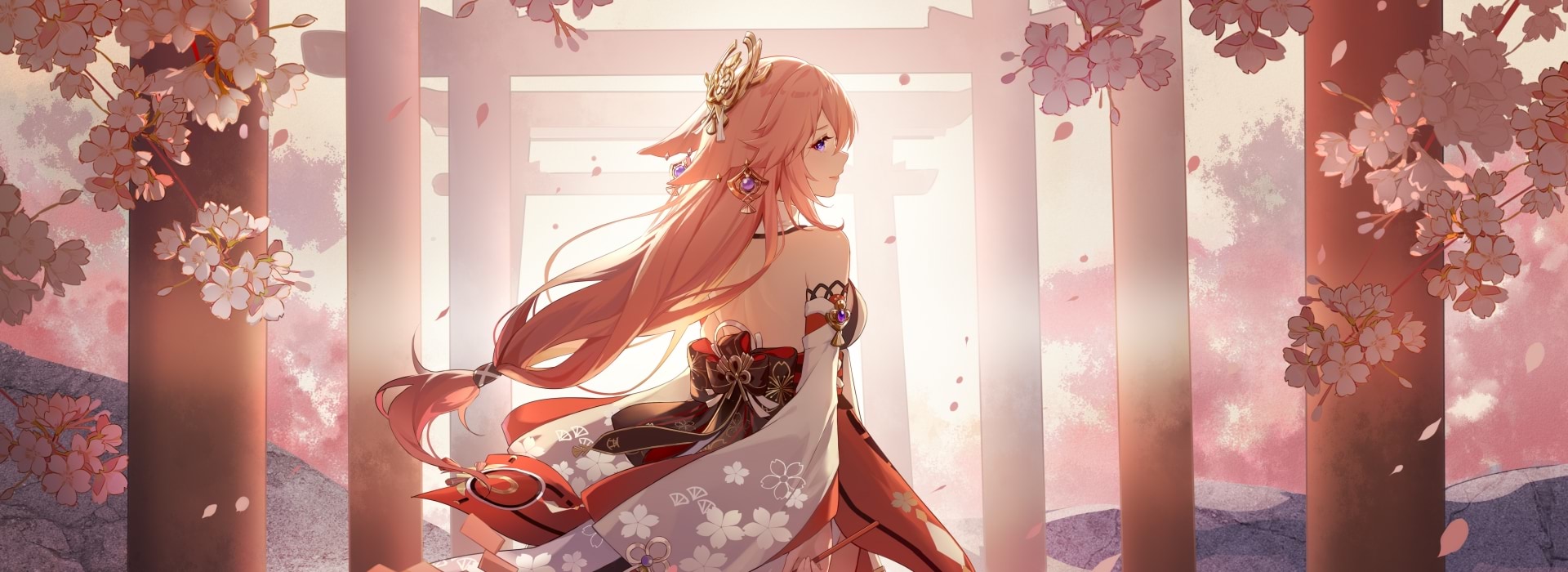 这张八重神子 4K 电脑壁纸,把《原神》稻妻樱海的日式浪漫 揉得恰到好处: